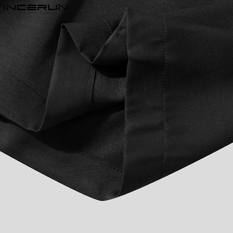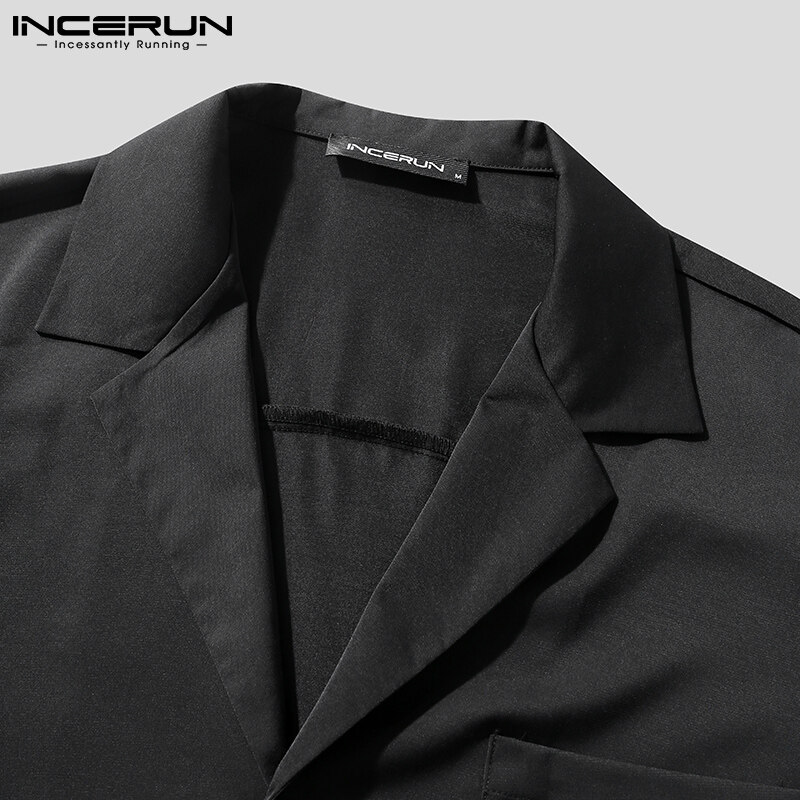 INCERUN男式短袖韩式休闲西装纽扣衬衫弹性腰间短裤套装(韩式)